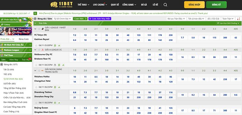 - Xem kèo cược tỷ số nên chọn những trang cá cược bóng đá uy tín như 11BET.